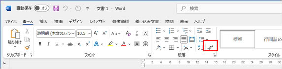 2.『段落』グループの中の「編集記号」をクリック