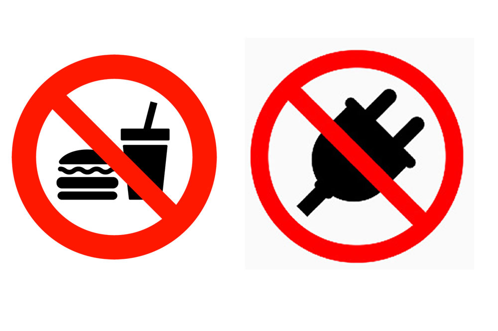 - 携帯電話やノートパソコンなどの個人機器を充電する行為は禁止です