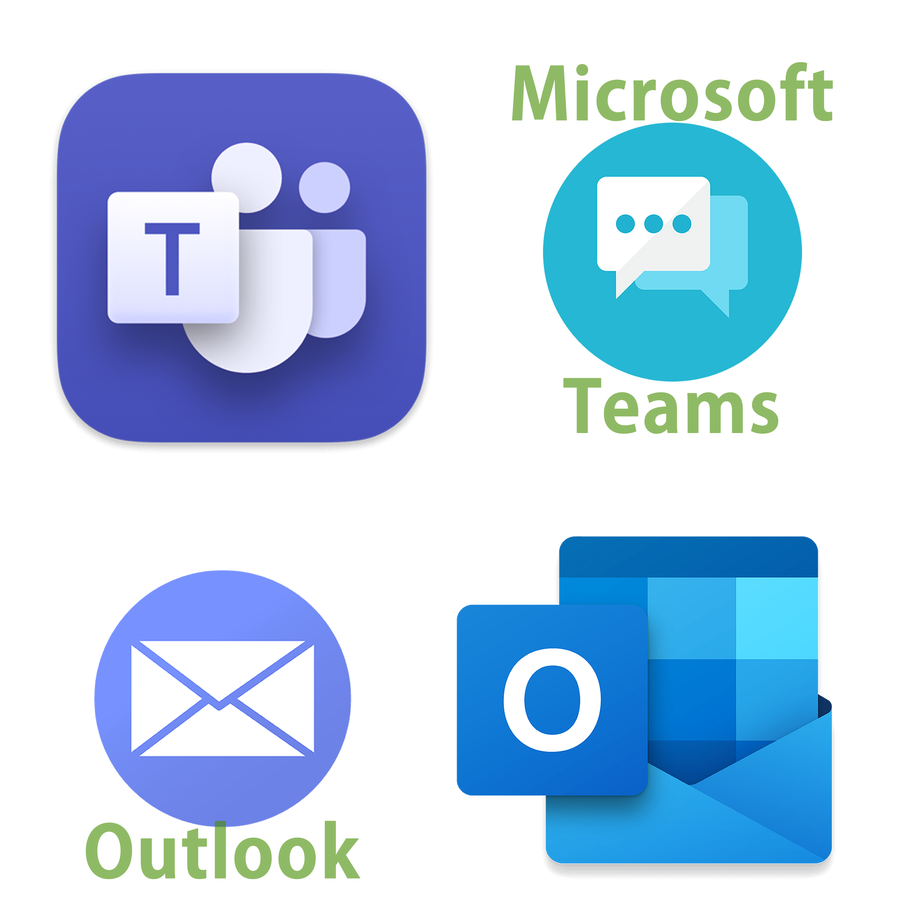 Outlookはメール機能、Teamsはチャット、ビデオ会議、ファイル共有機能が使えます。