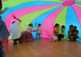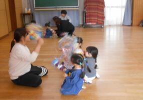 おうちの方と一緒に大きなパラバルーンをしました。大きな山を作ったり、中に入ったりして、楽しかったね!また一緒に遊ぼうね!
